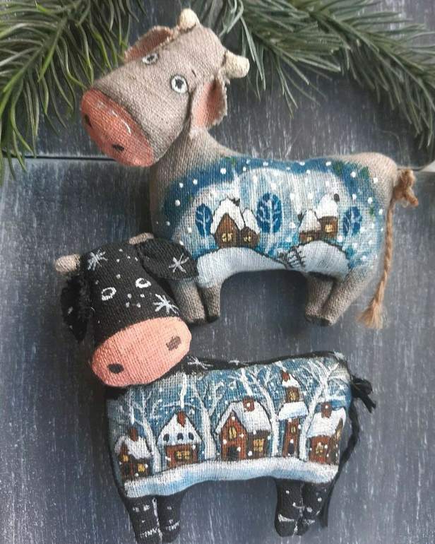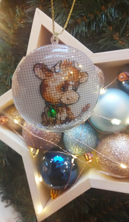Игрушки новые на ёлку отличные вышила, у бычка такое классное оформление !