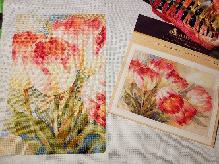 Сейчас вышивальный процесс идёт медленно, так что ставлю себе посильные задачи)