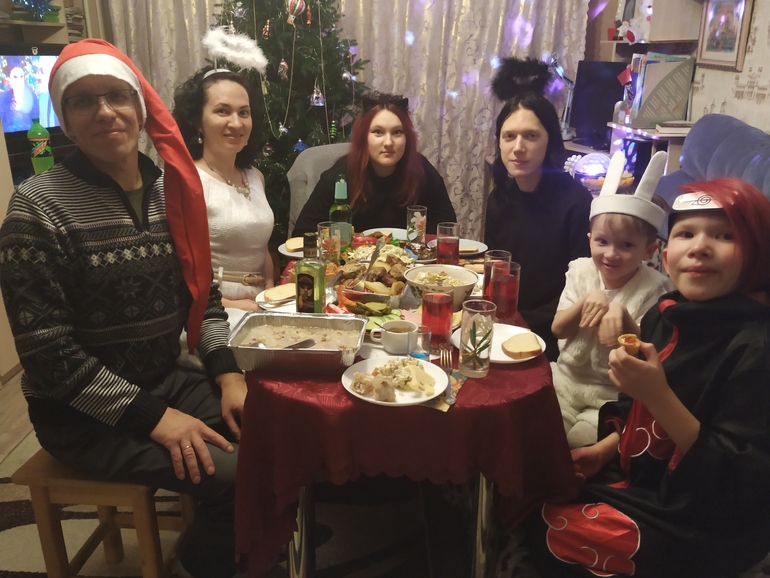 Новый год мы всегда отмечаем дома в кругу семьи. С нами всегда моя мама. А в этом году к нам присоединился ещё парень дочки.