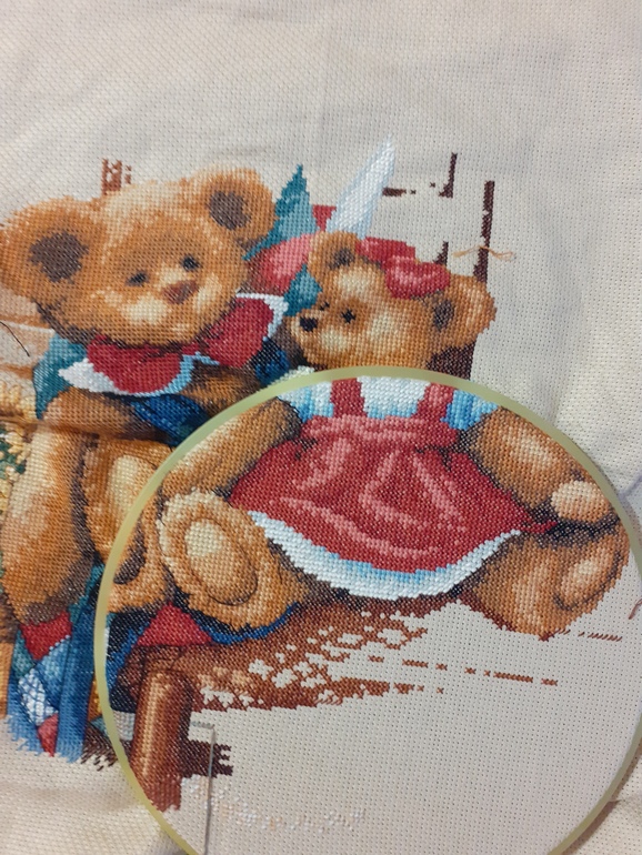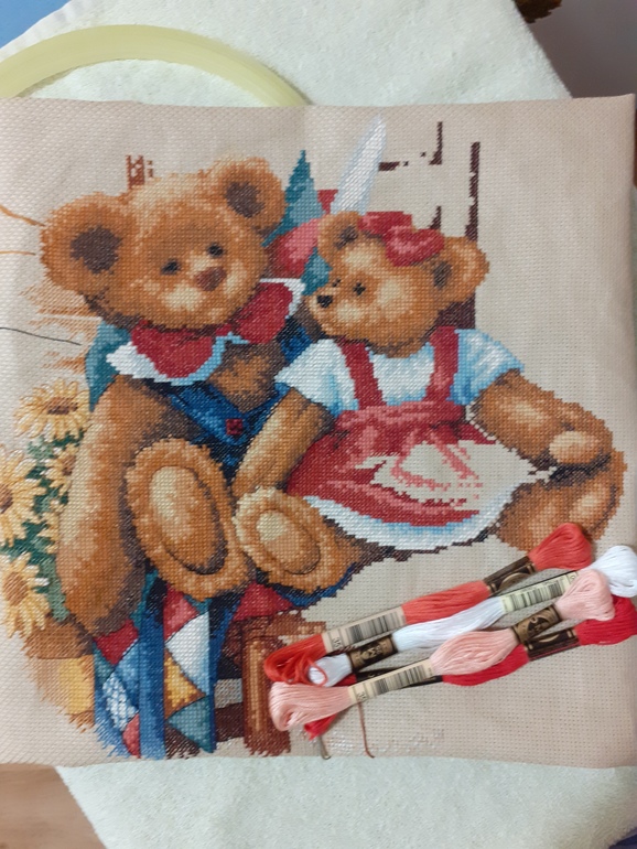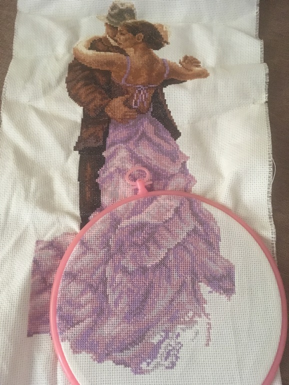 Вышивка у меня ударно продвинулась, но не знаю хватит ли розовых ниточек для платья, совсем мало их(((( возможно перейду дальше на фон и потом платье закончу как нитки куплю!