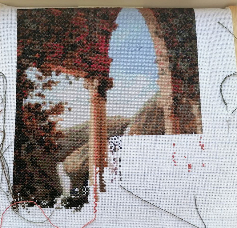 В общем, каждый раз , как сажусь за него, так порю🙈, надоело уже. Заканчивается основной цвет пошла вчера в магазин, а этого номера нет.... И что? В Москву теперь за ним ехать? Одно расстройство, а не вышивка.