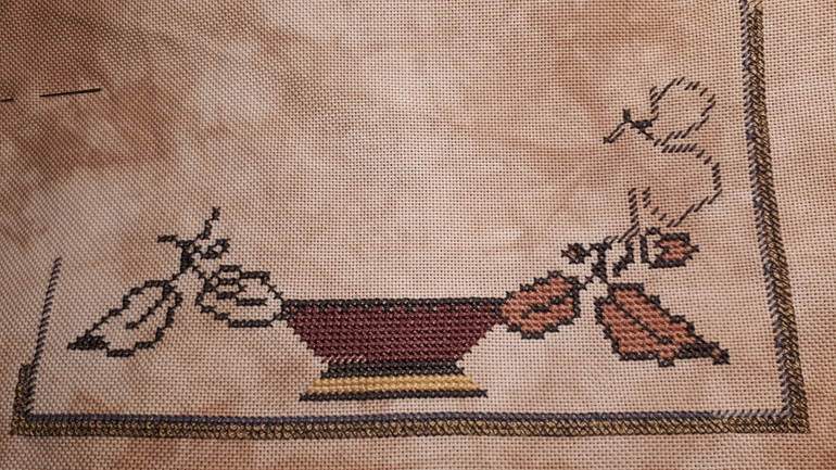 Присоединюсь к совету сэмплер отложить на недельку, не идет - не надо его пока мучить))) Хотя листьев цвет, кстати(уж не знаю, как там было по схеме) мне нравится, с вазой гармонирует.
