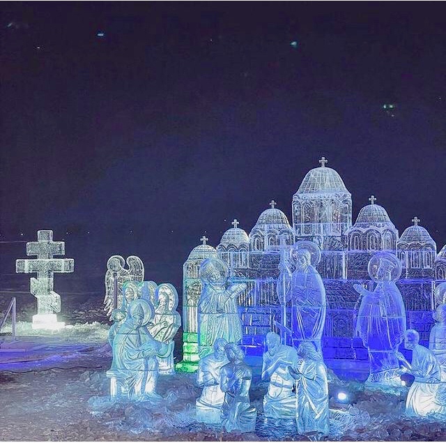 У нас на берегу возле купели вот такую ледяную красоту сделали!!!