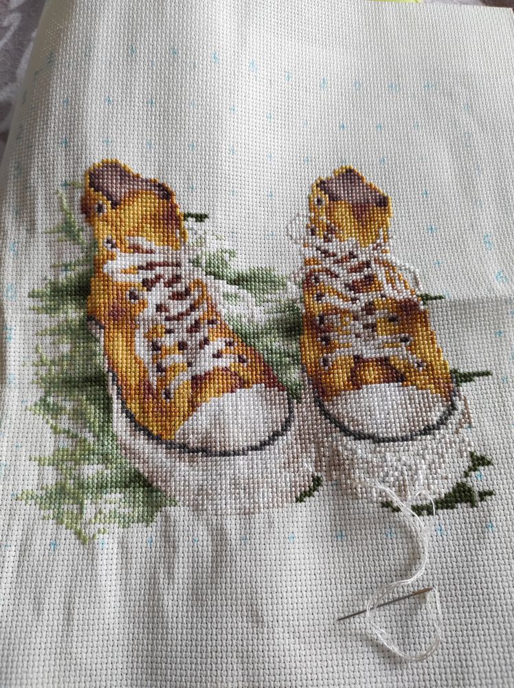Я-таки немного повышивала. Пишу с телефона, коллажи не получились, поэтому по одной фотке буду вставлять. Было: