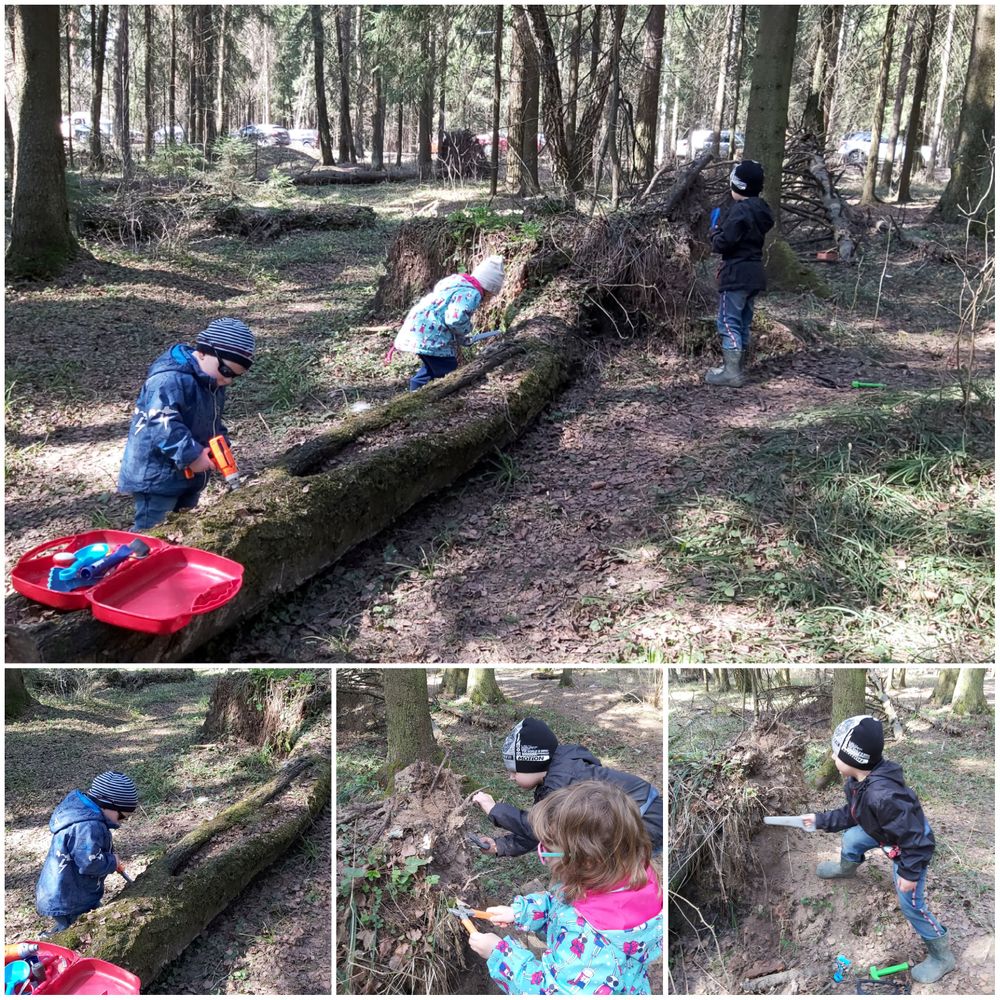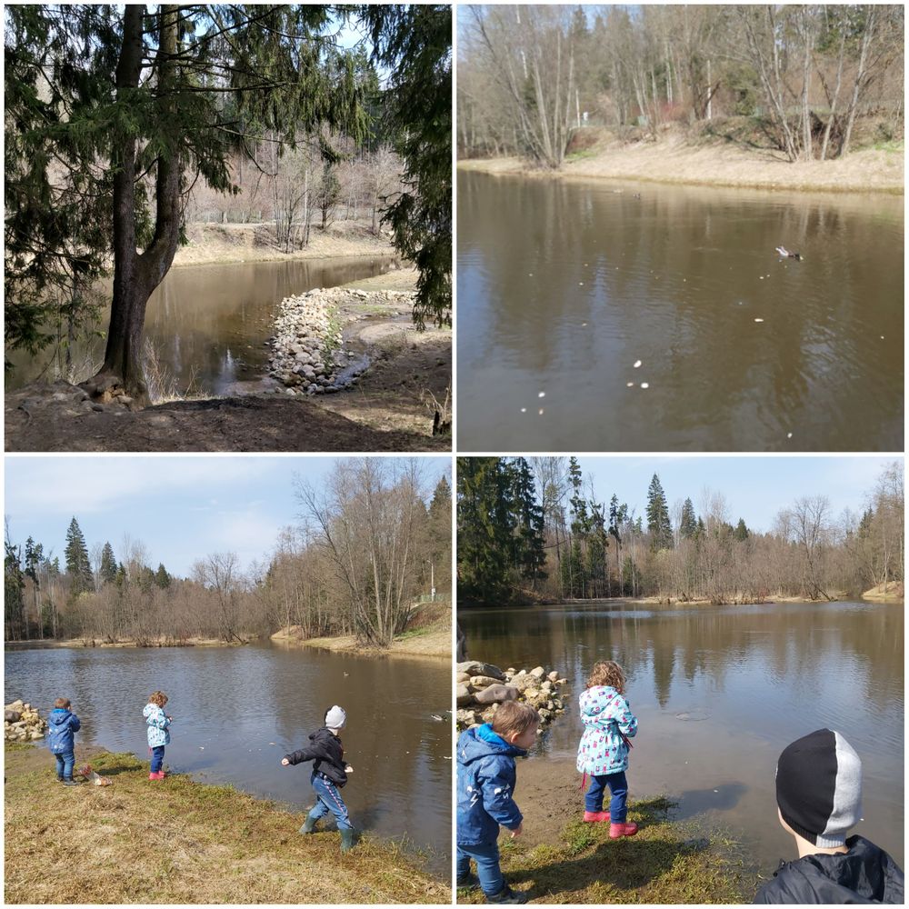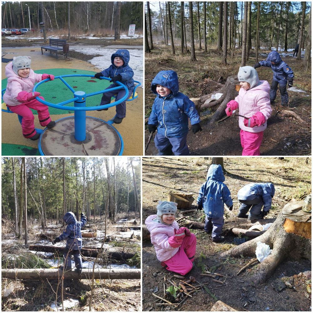 Делаем поделки, рисуем, Вова много помогает по хозяйству, гуляем в лесу (пару недель назад еще в зимней одежде, а потом прикупили детям весенний гардероб)