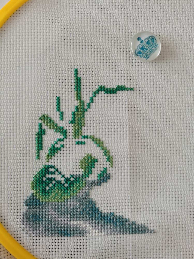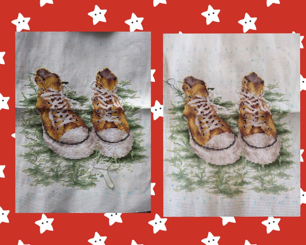 Так-с) Мои кедики. Остался бэкстич, надпись (не могу подобрать шрифт 😩) и дошить оставшуюся траву вокруг будущей надписи