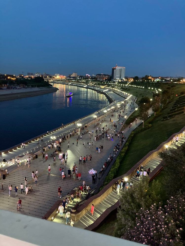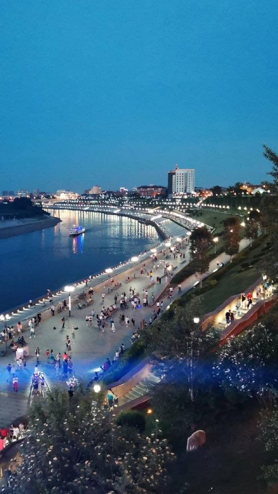 3 года живу в Тюмени, а впервые побывала на набережной с противоположного берега! Там много всего, от детских огромных площадок до скейт-горок.... Мост Влюбленных этот обалденный, кончено, но только издалека) Вблизи вечером все светится и на него и в лицо, сам мост шатается, короче меня начало укачивать и мы пошли подальше))