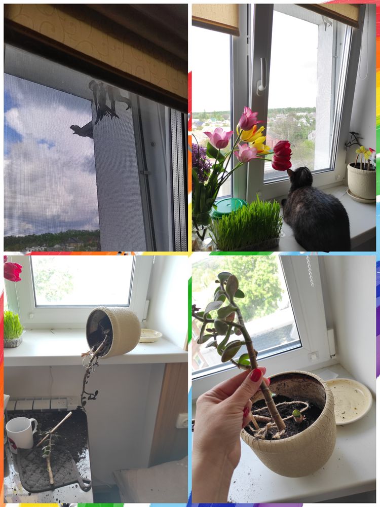 Расскажу вам о кошке 😼😼😼 Прилетели наши ласточки, кошка начала на них охотиться, сидя на кухонном подоконнике. Ну и... Вот - хронология одного преступления 😤