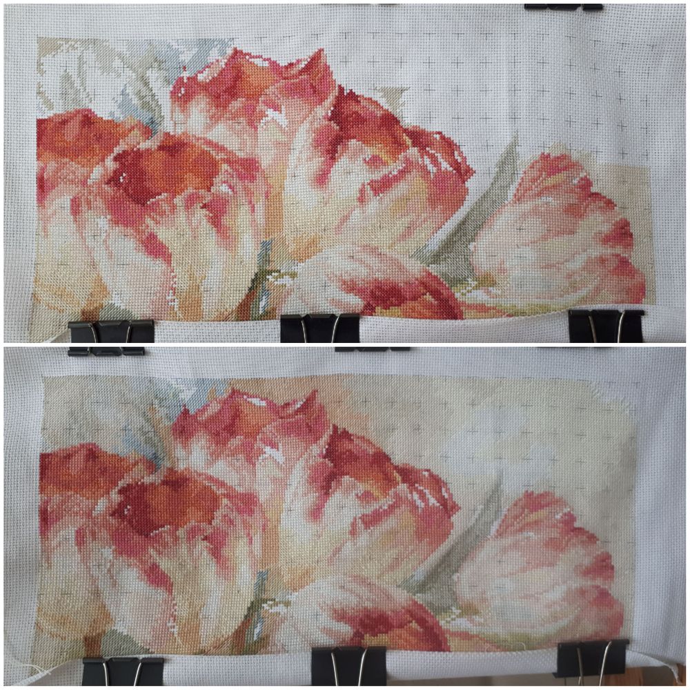 ну почти почти, но хочется именно так сказать))) результат за 2 недели. вчера до пол 1 ночи сидела вышивала, но уголочек так и не дошила. Если бы два вечера тупо не проленилась бы,возможно дошила бы, ну или хотя бы не пришлось вчера так долго сидеть. А еще я первый раз услышала ночью пение птиц, очень удивилась.