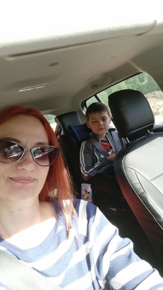 Вот вам наши морды)) рулю кстати с большим удовольствием))) ездили к родне в тульскую область, в одну сторону 4 часа рулила))) так что потихоньку набираю опыт) а в такую погоду и с такой красотой вокруг, вообще кайф ездить)))