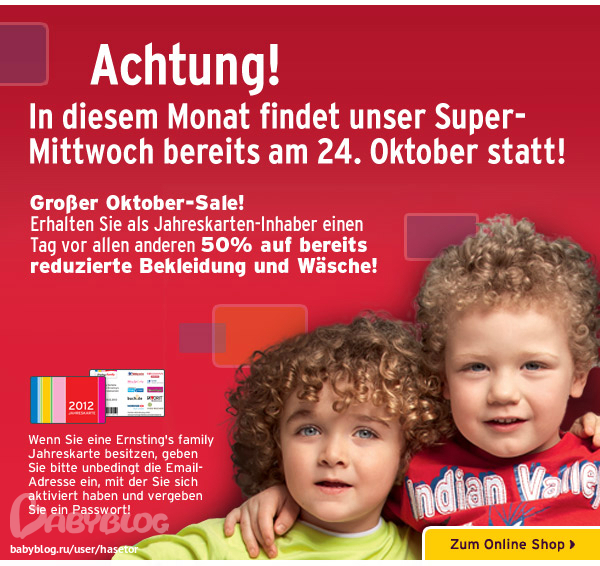 Осенняя распродажа в Ernstings Family (марка Topolino) с 24.10.2012!!!