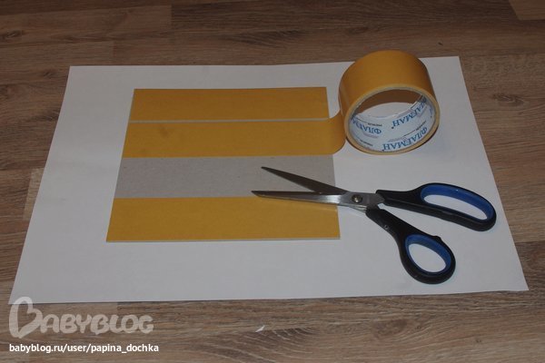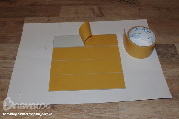 2. Необходимо обклеить картон с обеих сторон скотчем