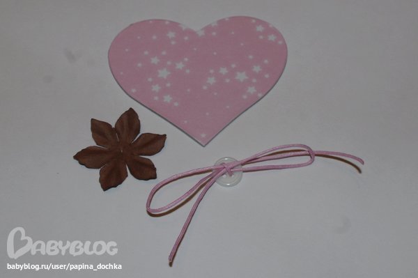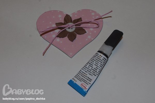 9. затем соединила клеем заготовку-сердечко, цветок и пуговку.