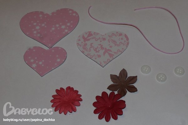 украшения (у меня это - бумажные цветы, пуговицы, шнурок, ленточки)
