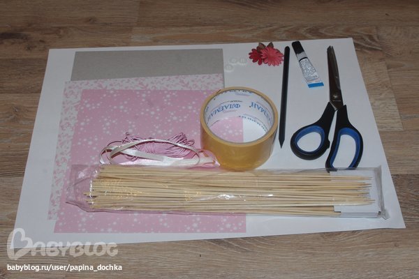 деревянные палочки (я использовала шпажки для мини-шашлычков, куплены в Перекрёстке за 50 руб./пачка из 100 штук).