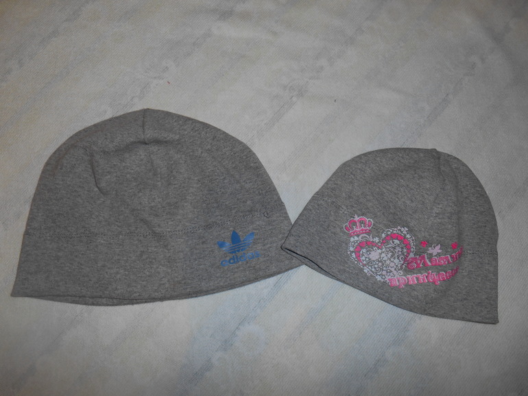 И еще простые шапочки сыну и дочке из одинаковой ткани .