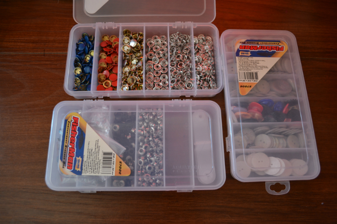 коробки с кнопками, пуговицами, магнитами, люверсами