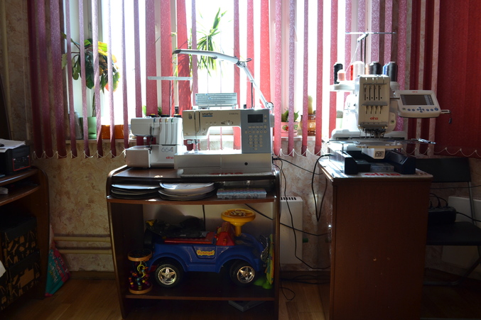 Новых фото не делала, а мастерская моя за это время немного разрослась. Вместо детской машинки под столом теперь стоит распошивальная машинка и еще много-много ниток.
