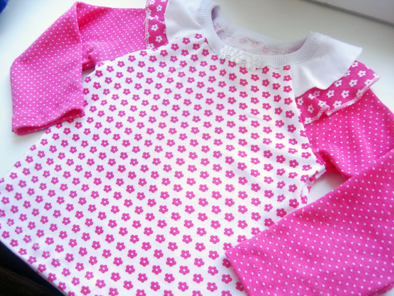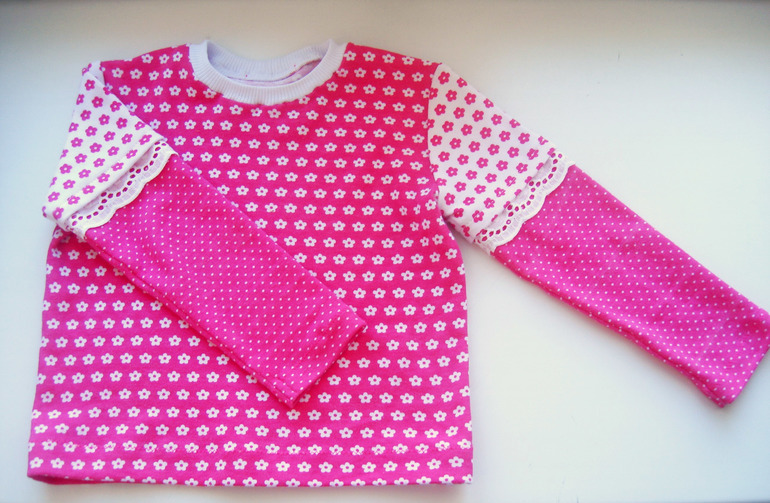 Первый вообще-то планировался с коротким рукавом... но что-то я отвлеклась и выкроила с длинным:)