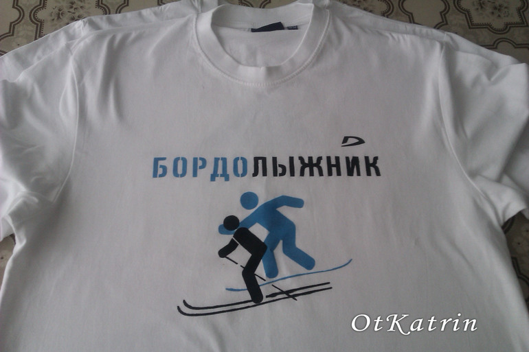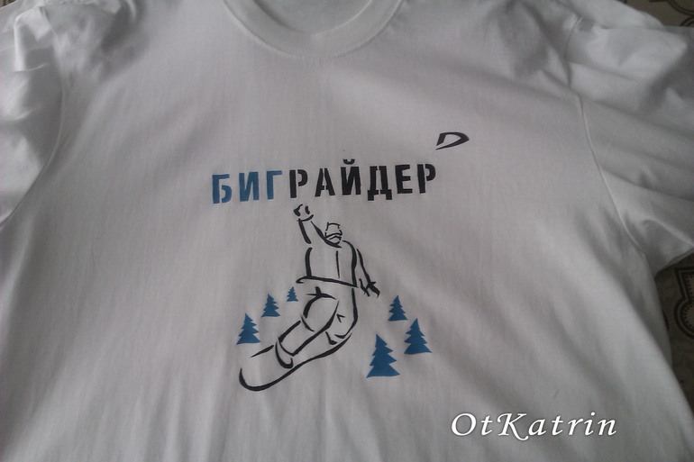 Рисунки - общая мозговая деятельность, исполнение - моё), сделано по распечатанным и вырезанным трафаретам, майки покупные. Каждый рисунок отражает какую-либо характерную черту человека, которому она предназначается.