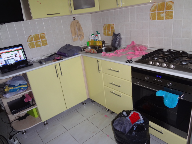 Это общий вид на моё безобразие!на полу также пакет с тканями,они у меня повсюду!Муж смеется,что кухня не для еды,а для моего рукоделия) Под ноутбуком в пакетиках не разобранные заказы.Это целая проблема их раздать,тк заказывают,оплачивают,а забирать некогда!
