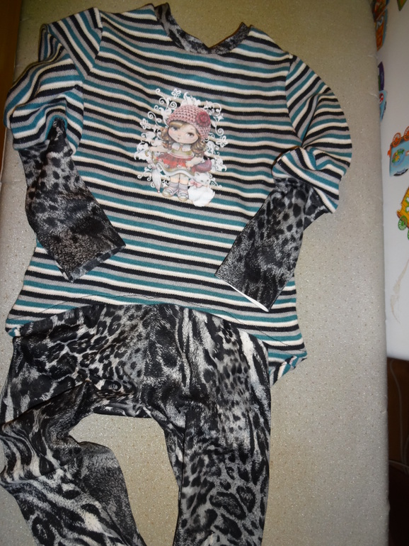 Шьем детямКостюм для дочки: интерлок с начесом, какой-то бесшовный синтетический трикотаж и термотрансфер.