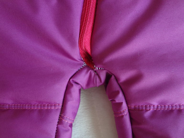 И еще,когда комбез был вывернут и я вшивала молнию(кстати впервые вроде бы получилось вшить молнию МЕЖДУ слоями)я пришила манжеты во внутрь подкладки,но вывернуть потом не смогла,запуталась!вот что получилось,придется отдельно пришивать манжету на подкладку!манжеты рибана,кашкорсе нет,но я думаю,что лежать в коляске можно)))