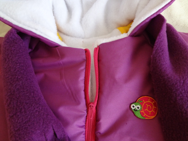 Шарфик из флиса закрывает недостаток капюшона(хотя я его кроила уже в последний момент с линеечкой...)и еще какая то жесть с окончанием молнии,не знаю,как это правильно сделать надо было?