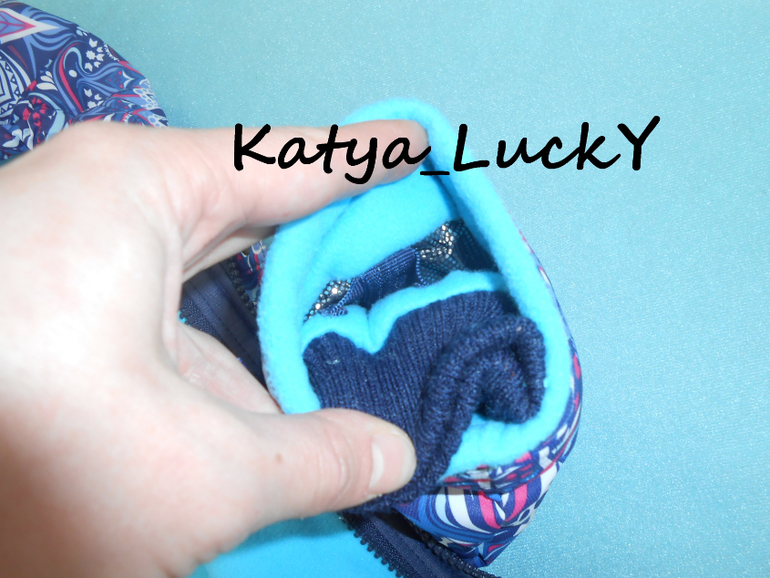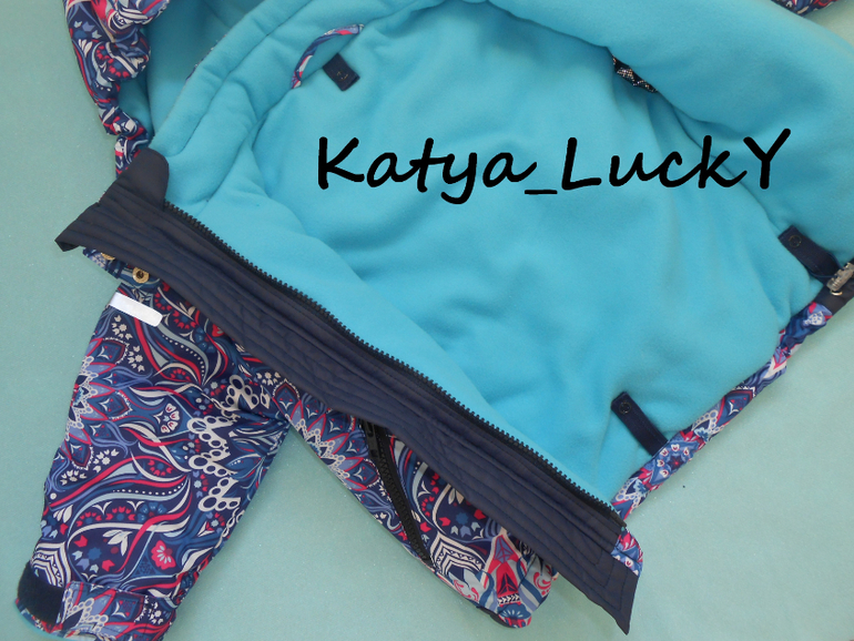 Для удобного одевания варежек на малюсенькие ручки и учитывая, что внутрення куртка имеет манжет-резинку, рукав сделан прямой, внизу расширенный, фиксируется патой на липучке. Мне очень понравилось на практике рукава с патой, у сына на комбезе так сделала, удобно одевать, удобно фиксировать ширину, любые варежки поверх можно одеть, либо внутрь и плотно зафиксировать.