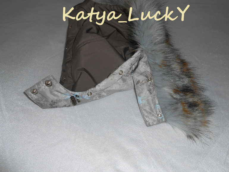 - капюшон съемный, на кнопках, кнопки скрыты. На капе пата, фиксирующая глубину. съемная меховая опушка.