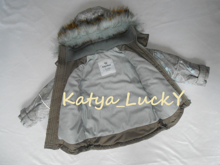 Материалы: куртка сшита из принтованной таффеты, комбинировала с однотонной плотной дюспой. Утеплитель Альполюкс 200, подклад серебристая каризма, в рукавах гладкой стороной. Полукомбинезон сшит из плотной матовой однотонной дюспы, утеплитель - Альполюкс 150, на подкладе серебристая каризма гладкой стороной.