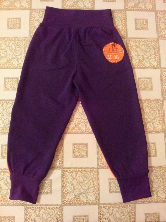 Он конечно по низу ровный, просто большеват и так на фото получилось. А для средней из папиных 2х надоевших футболок - штанишки. Спереди: