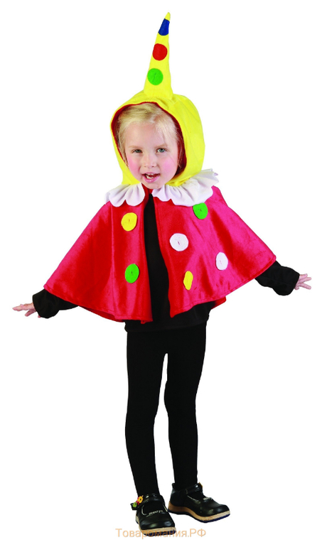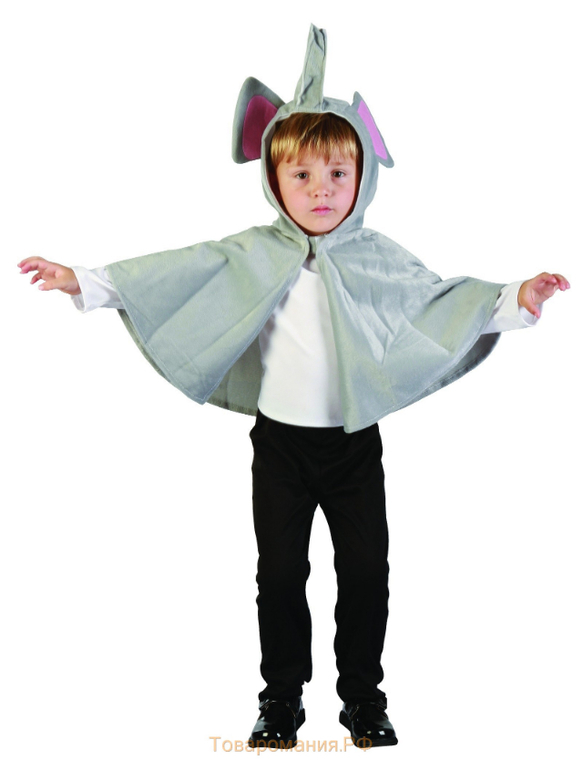Кейп в классическом виде - накидка с прорезями для рук, ребенок не снимет. Спереди фиксируется атласным бантом. Такая накидка не будет мешать, сковывать движения. Бысто одеть для хоровода вокруг ёлки после спектакля.
