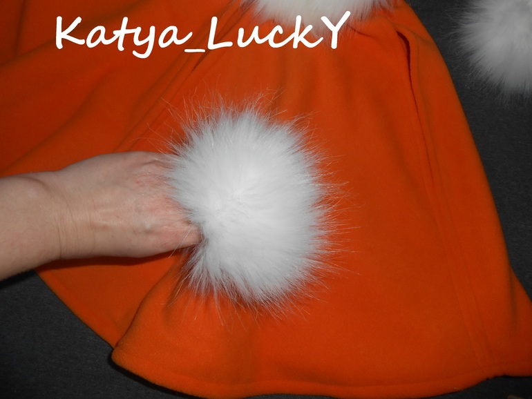 Материалы: плотный флис-антипиллинг, интерлок на подклад капа и обрачку шва горловины, иск.мех белой лисы и атласная ленточка.