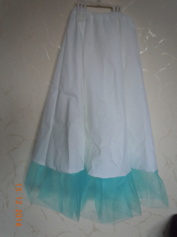 Платье на рост 110, выкройку верха взяла из Отто -это выкройка лонгслива на 92р-р, которая по объемам совпадает с объемами девочки. Верх- ажурный трикотаж и блестящий трикотаж. Юбка - атлас, по низу просто ролевым швом обработала. Потайную молнию вшивала первый раз - есть немного перекос, но пороть не стала, побоялась запороть белый трикотаж. Платье уже одевали на утренник, дети Эльзу узнали - значит костюм получился)))