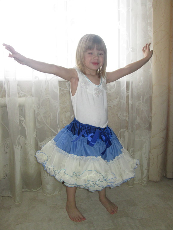Да меня банально жаба задушила 5 м ткани покупать на 1 утренник. Там плюс в том что ткани не сыплются, я эту я 2 вечера получившиеся после раскроя ленты на оверлоке руликовым швом обрабатывала и 5 катушек ниток извела. Как я для себя вывод сделала — должна быть ткань которая легко дает сборки. Я сначала волан (или как там это называтеся) для нижнего яруса собрала до нужной длины, потом пришила...и так дальше по схеме снизу наверх. А если брать спец ткань. то её можно сразу пришивать растягивая в стороны. получаются сборки намного быстрее.
