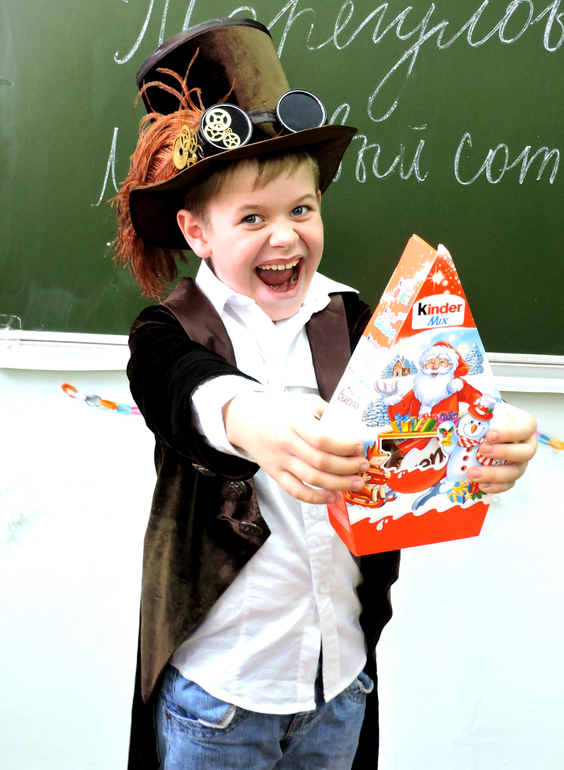 Подарил он мальчику шляпу времени, волшебный фрак и коробку конфет.