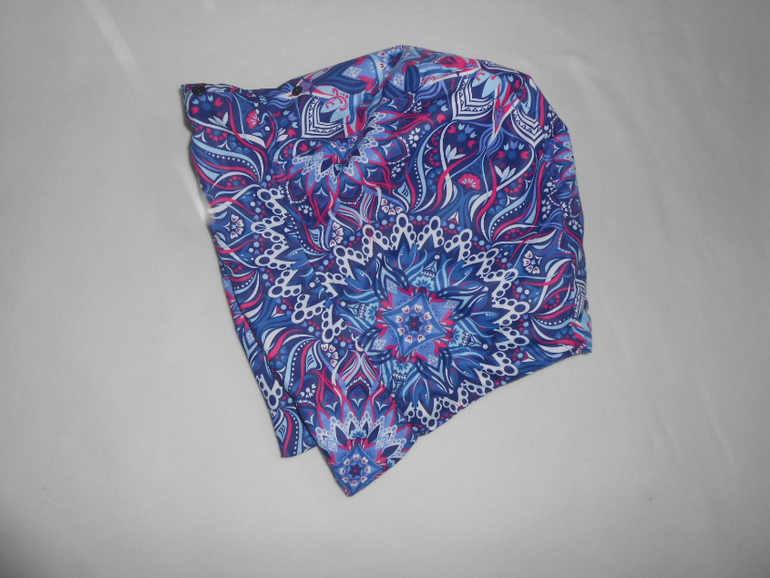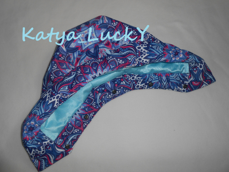 - кап съемный. выкроен так, чтобы плотно сидел на голове без утяжек. на капе отворот для крепления меха (заказчица сама прикрепит) Кнопки крнепления капа скрыты. Пристегнутый кап смотрится как вшитый и повторяет рисунок принта спинки куртки