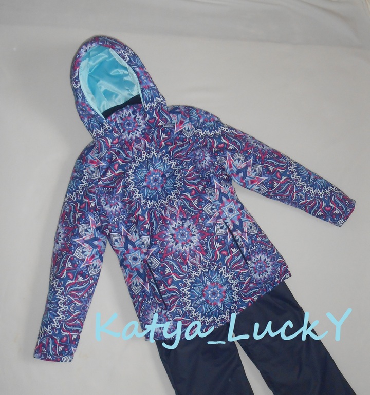 Материалы: принтованная мембрана с армированной нитью, подклад - лазурная каризма, утеплитель - изософт 250+60гр (это почти 400гр!!!!)
