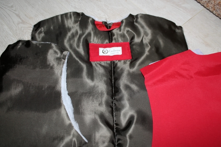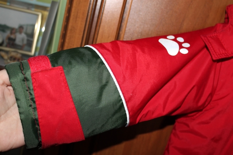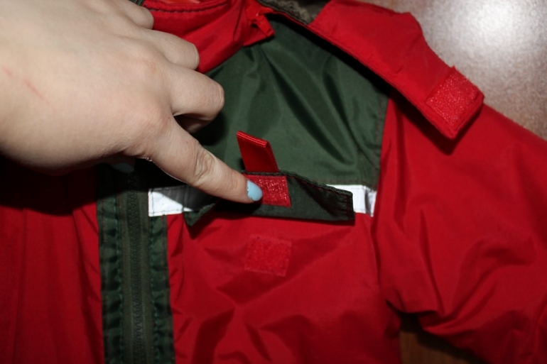 Паты на рукавах тоже по ходу дела были выкроены красными,приспичило))) И отстрочка у меня везде красными нитками. За исключением шва настрачивания рамки. На правом рукаве светоотражающий элемент,в швах рукавов и штанин СВО кант.,на левую полочку пристроила остаточек ленты)