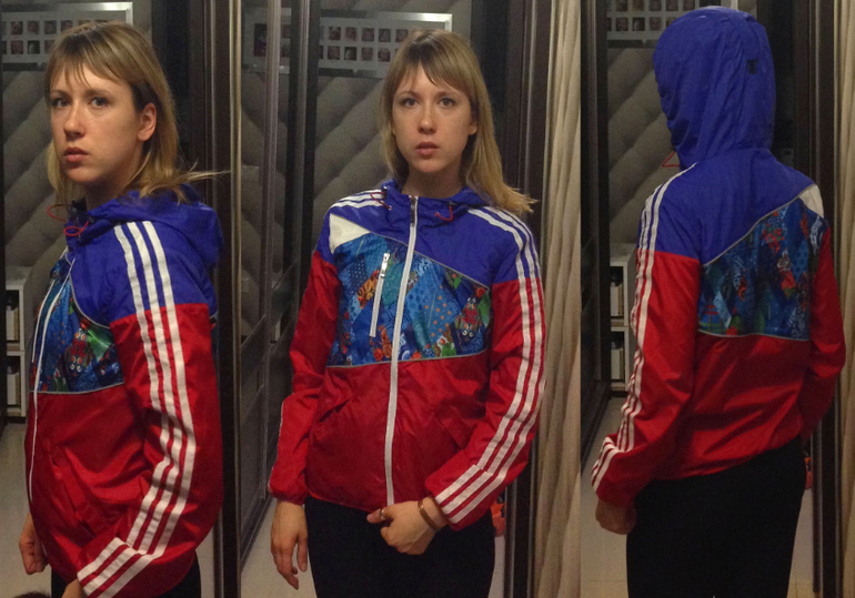 Красная резинка мне тут не очень нравится, но синей не было, а мне ну оочень срочно понадобилась ветровка среди зимы