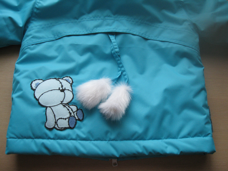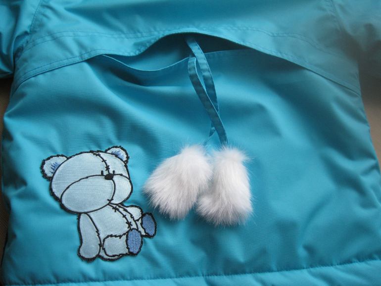 тут все понятно - модель оттобре не измененная, только карман сделала как мне хотелось - большуший, младший любит карманы а тут еще задумка что можно и поиграть с кармашком и медвеженком, пумпошки белые меховые вшиты внутрь кармана.