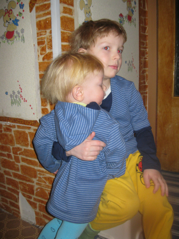 модель Тимкиной кофты из осеннего оттобре, но там кап немного иной и на пуговке застегивается, я сделала такой кап с нахлестом (понравился мне летом шила Антону с таким капом кофту) и углубила горловину.