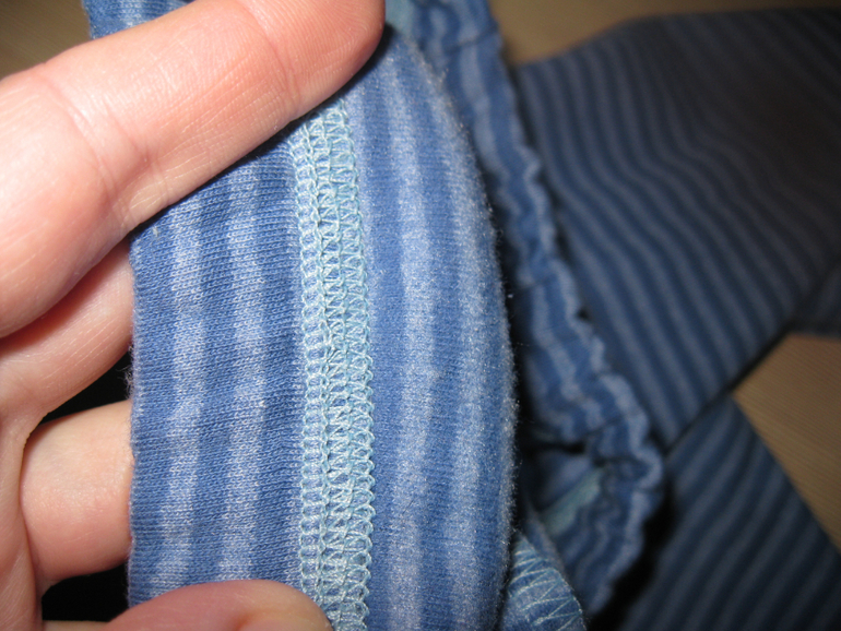 обработка резинки: оверлоком прохожусь по краю вместе с резинкой, отгибаю и прохожусь распошивалкой, все плотненько получается и резинка полностью зафиксирована.
