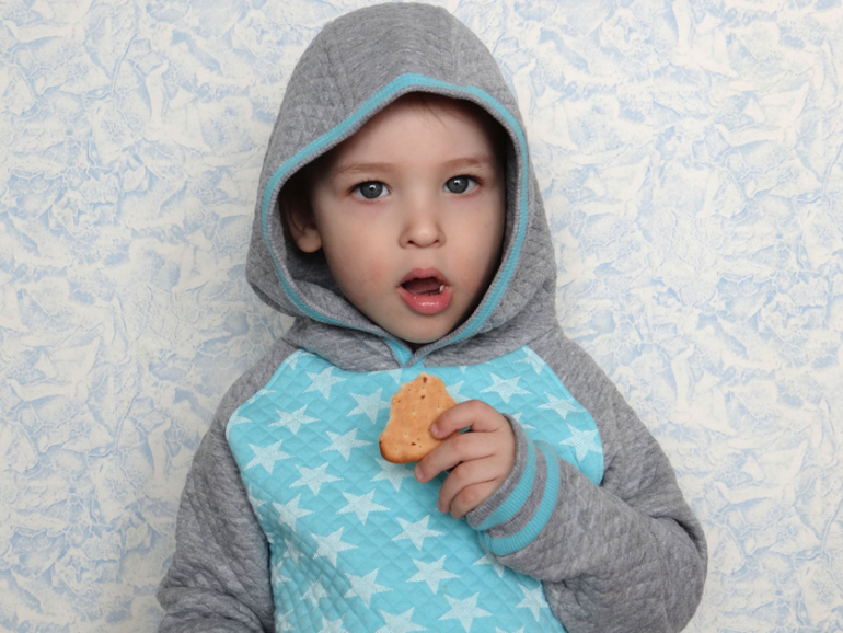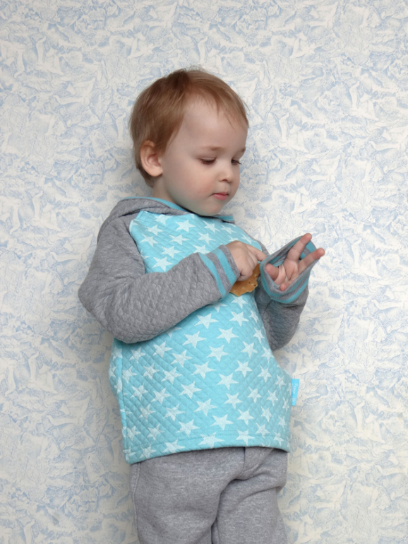 Верх оттобре 2015/1- 9 на рост 98. Широкая толстовочка с глубоким капюшоном. Ткань капитоний, в капе нет подклада, швы спрятала киперкой.