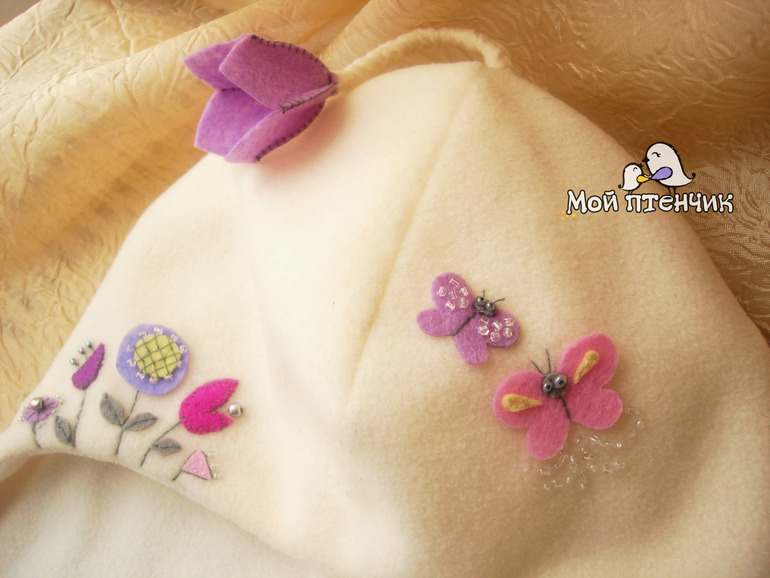 Шьем детямЯ с новой шапочкой:) Нашла для себя супер медитацию - вышиваю цветочки и ухожу в астрал:))) На этот раз цветочков мне показалось мало, поэтому на их сладкий аромат слетелись две чудные бабочки... а на макушке распустился настоящий весенний тюльпан!