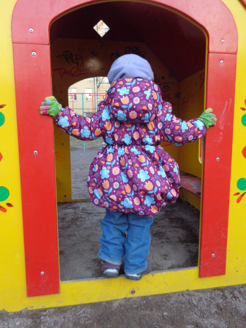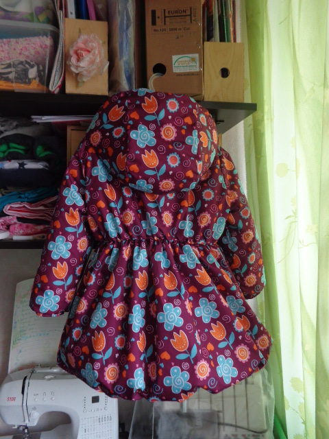 Дюспа ,утеплитель Термофин100 и простая подкладка .Соеденила две выкройки из Бурды 11/11 и сайта Шкатулка ( основная часть из бурды а низ баллоном со шкатулки ) .Брала размер 98 ( дочка сейчас 90 ) оказалось широковато ,а ткани на пояс не хватило ( 1 метр ушел полностью ) и пришлось изнутри резинку пришить . Мне очень понравился воротник - высокий и хорошо закрывает и капюшон . Рукава с утеплителем 100 нормально . Думаю по выкройке из Бурды теперь сыну сошью куртку .