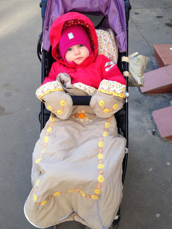 Классные и конверты, и рукавички! Хорошо, когда сидит в коляске. Мы только максимум минут 15 можем усидеть, дальше только топать.