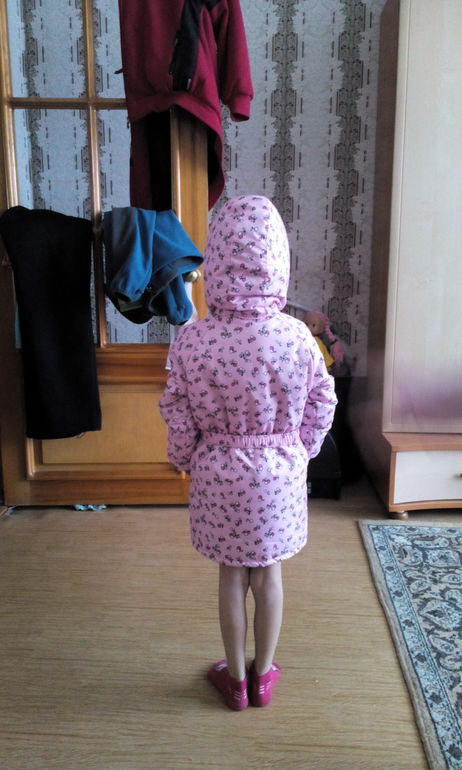 Модель 17 из оттобре 2014/4 переделанная немного, воротник-стойку сделала повыше, капюшон переделала в двухшовный, модель удлинила. На рост 110 см. брала выкройку на размер 122, рукава еще удлиняла, пройму брала с размера 98. Верх плащевка с синтепоном 100, подклад простеган с синтепоном (взяла готовую стежку), на воротнике рибана и пояс-резинка на фастексе (в наших магазинах только черный нашла, может еще заменю). И немного деталей, фотограф из меня не очень.