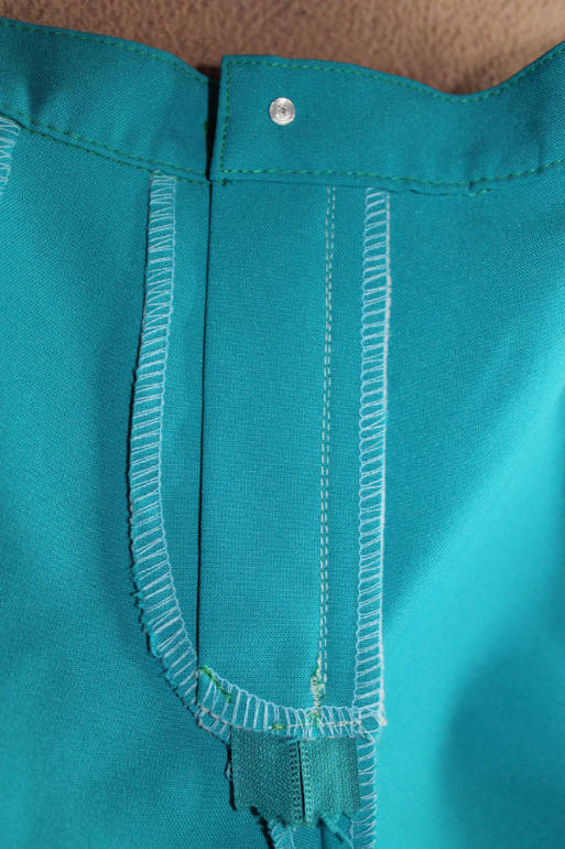 Шорты. Тоже в общем ничего особенно сложного. Карманов 5 штук только. Застёжка на молнию и пуговицу,пояс притачной с резинкой. В оригинале шорты на обтачке,помечено,что носятся ниже талии на 2,5 см. Но Димыч у нас худючий,тем более шила баз примерки,потому-пояс и резинка. А то потеряет)))) Два кармана с подрезным бочком,в качестве отделки планка из сорочечной ткани. И по всему изделию отстрочка зелёными нитками,как и на рубашке,кстати.